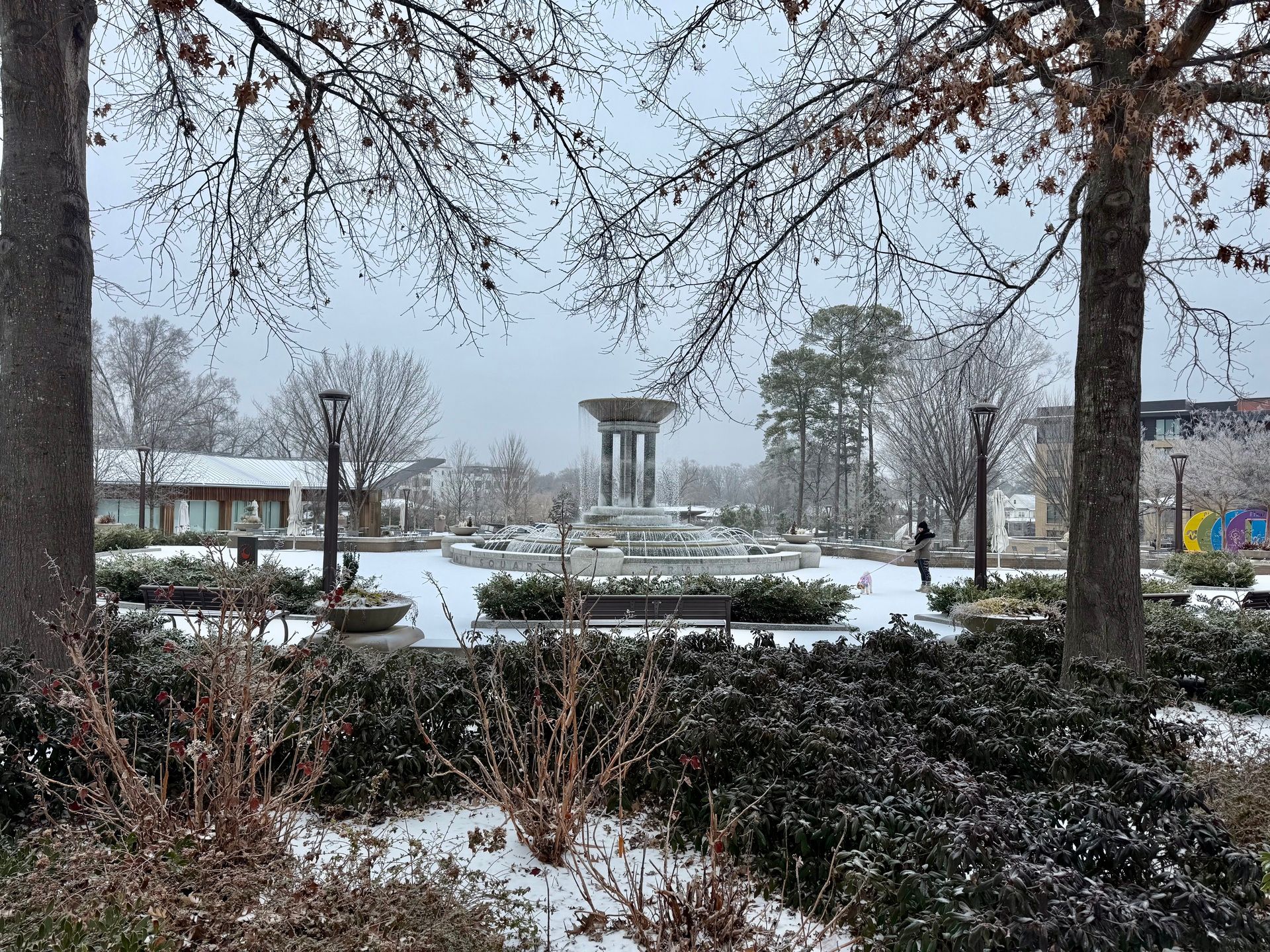 On Sunday, I walked roughly a mile to Downtown Cary Park around noon and didn’t encounter a single car on the road. Kids were sledding in the middle of the street, and Cary briefly transformed into a Thomas Kinkade painting.
